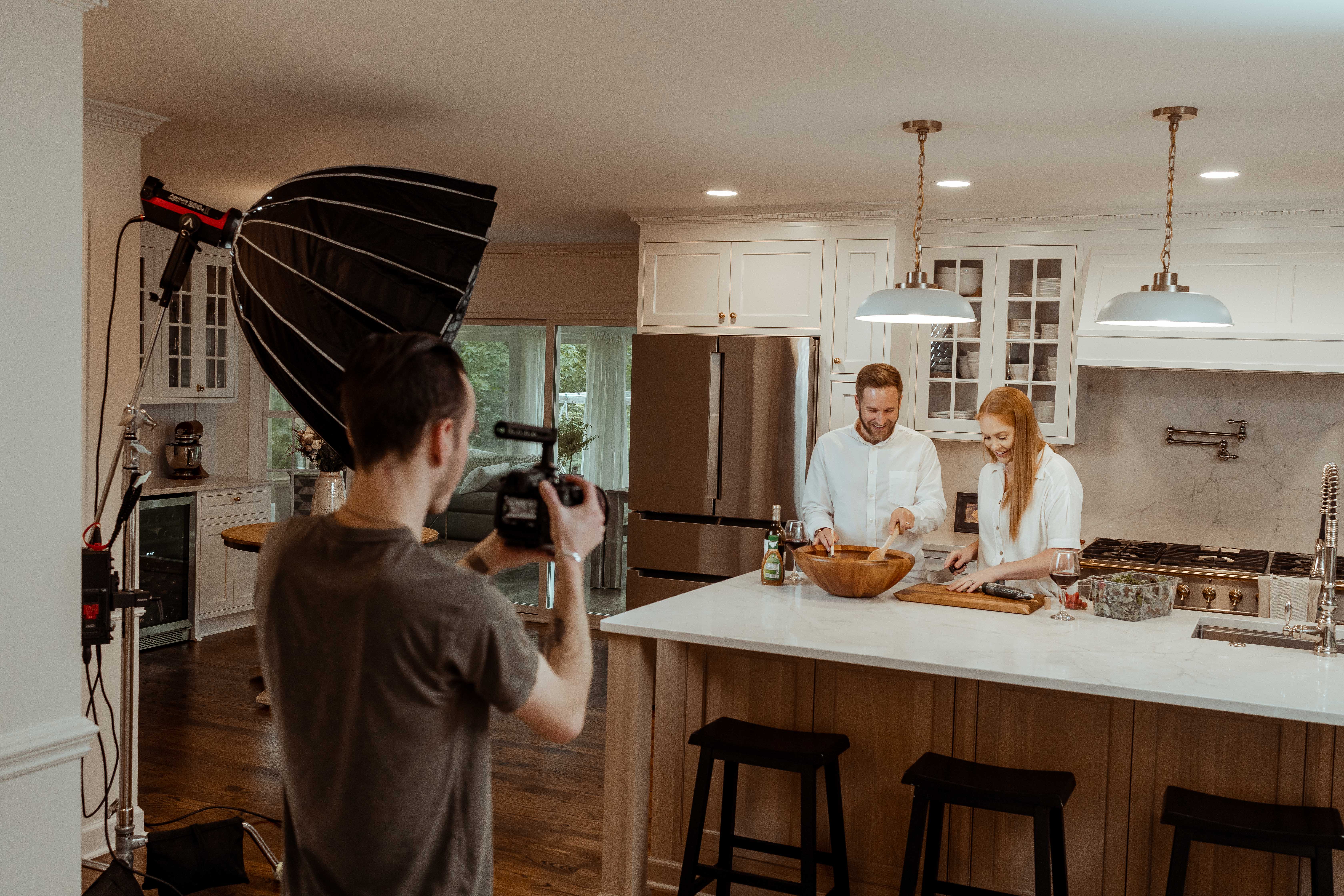 The overall goal of this production was to create a high-level, consumer-focused, engaging, visual tour of the ReVision client process. This video follows a married couple who has come to ReVision with a remodeling project and are excited to get things underway. We start by showing the couple walking through the doors of the design center where a friendly ReVision team member meets them. Then transitioning to show them looking at renderings, sample finishes, and making decisions of their project. The goal was to show specifically the design center's professionalism and the touch and feel aspect. The scene then transitions to show their home renovations underway as they interact with the onsite ReVision project manager and check up on the status of their remodeling project. Cutting then to close-up shots of the ReVision crew working onsite and getting the project underway. Upon returning inside the home, the couple gets to see their final project and smile as they walk through the space. Finally ending with them preparing and sitting down for a meal in their brand-new space.